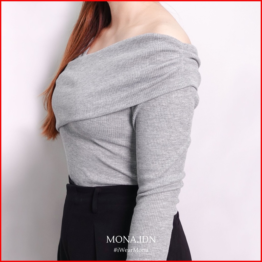 Sabrina Knit Atasan Wanita Lengan Panjang Basic Korean Top Baju Knit Long Sleeve Premium Knit - Mona