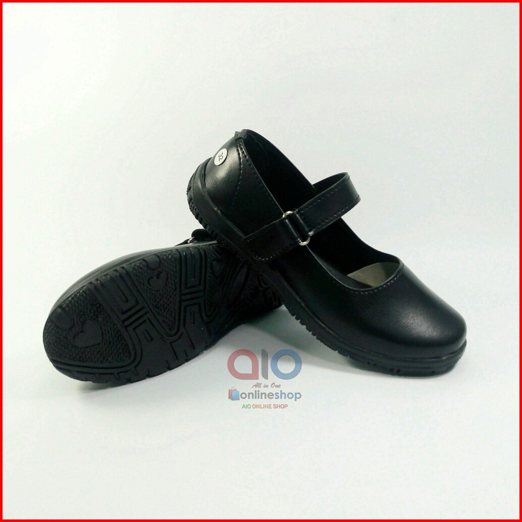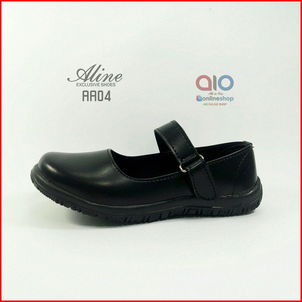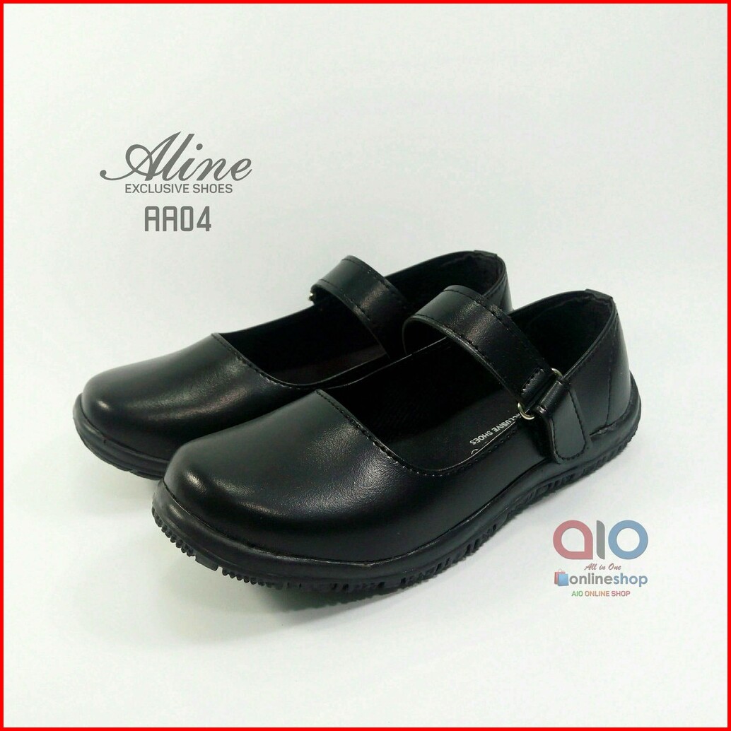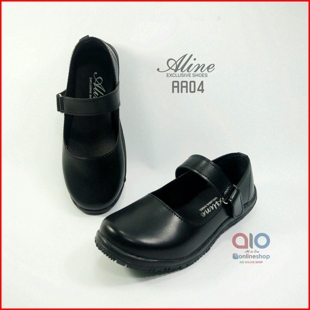 Sepatu Anak Perempuan Aline Size 31-35 Pantofel Paskibra Sekolah Hitam Paud Tk Sd Flats Aa04