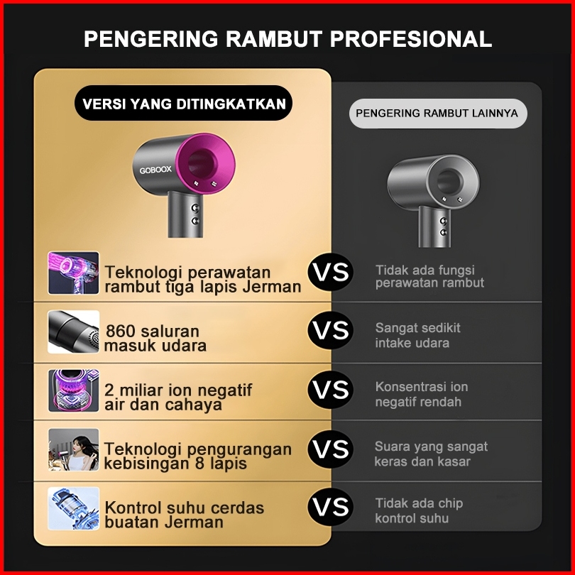 Goboox Hair Dryer Profesional Negative Ion Pengering Rambut Portable Ultra High Speed Blower Strong Wind Cepat Kering Ti