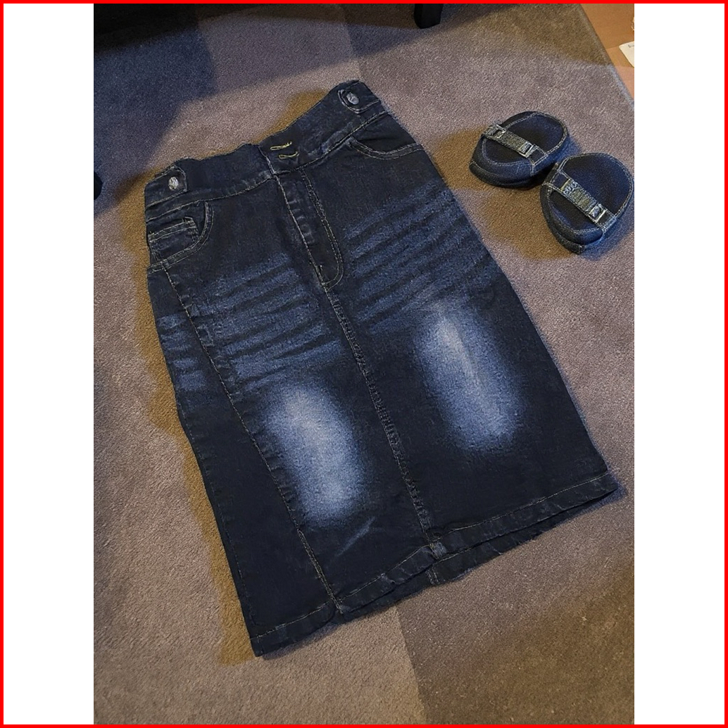 Rok Jeans Pendek Stretch Rok Denim Belah Samping Pinggang Karet M-l-xl