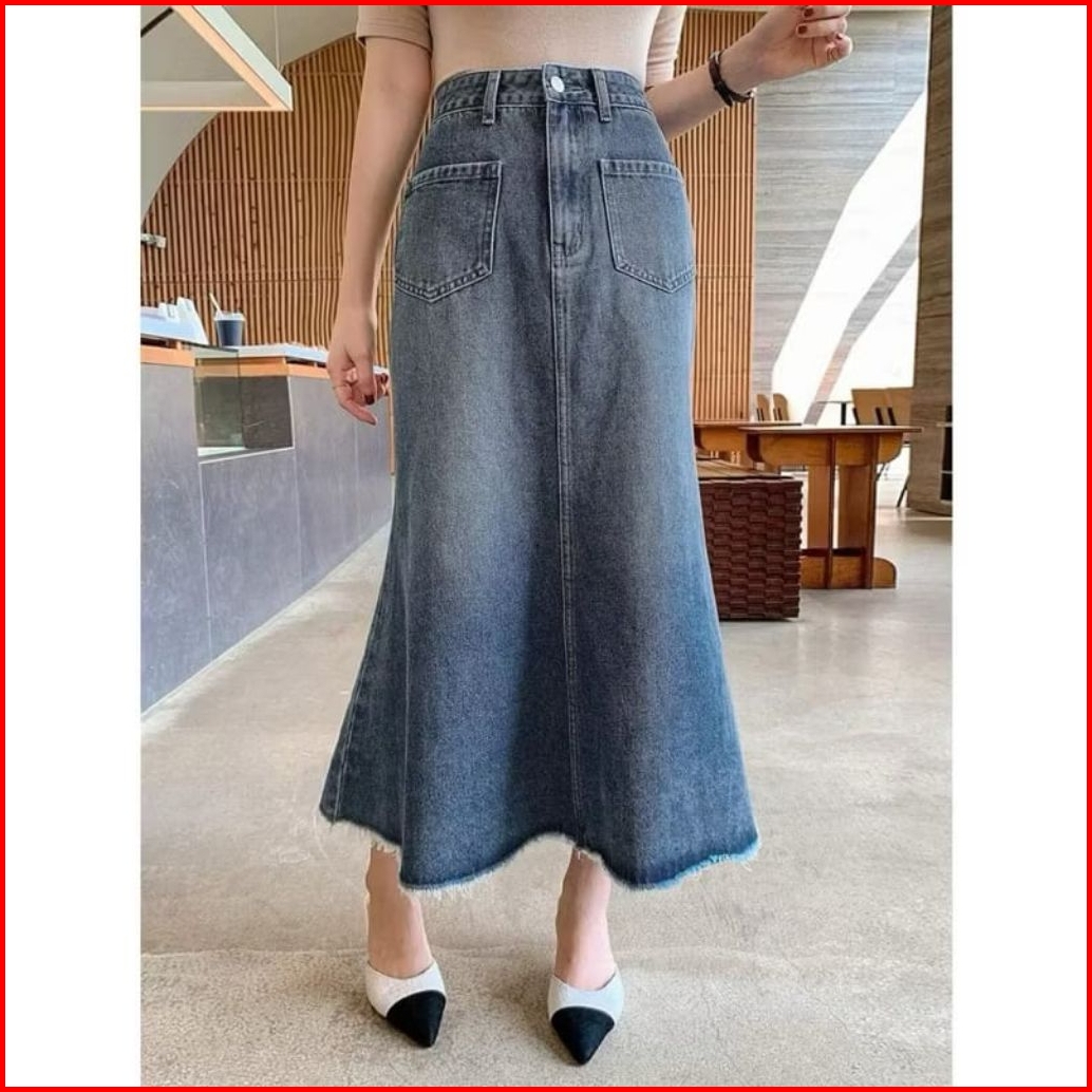 Rok Jeans Retro Korean Style Rok Panjang Mayung Wanita Bb 45 - 75 Kg