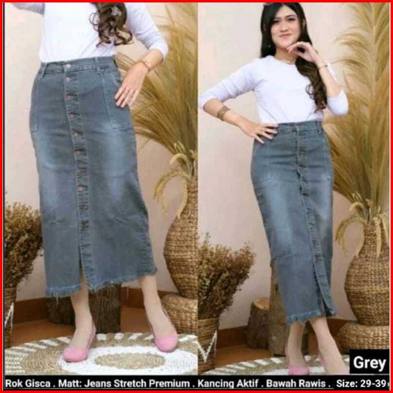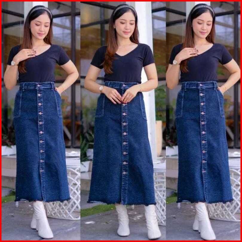 Ziffana Rok Jeans Tamara Kancing Belah Samping Korean Style Skirt Denim Hight Quality