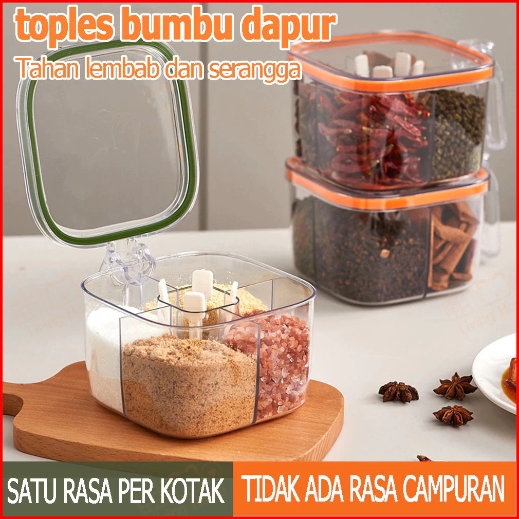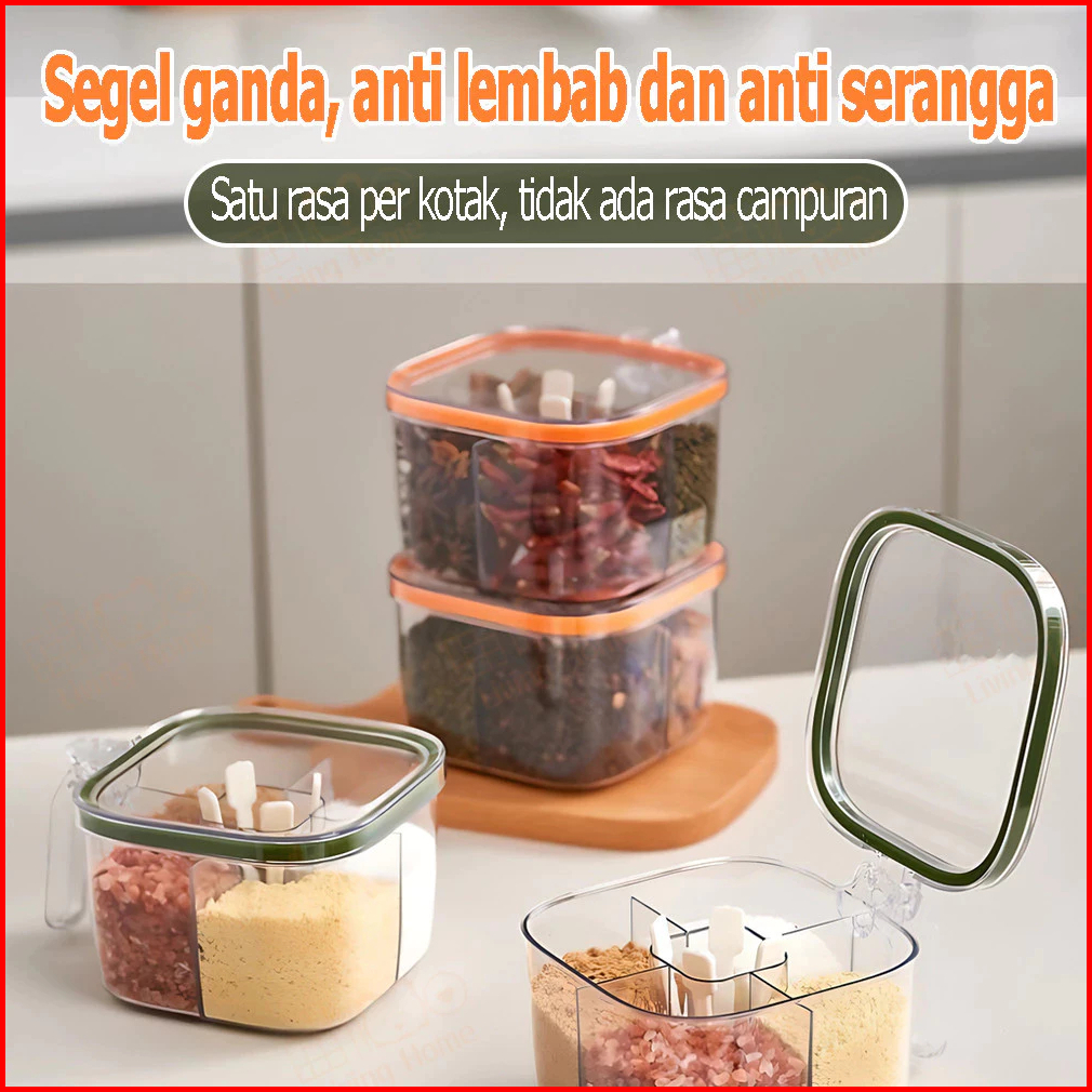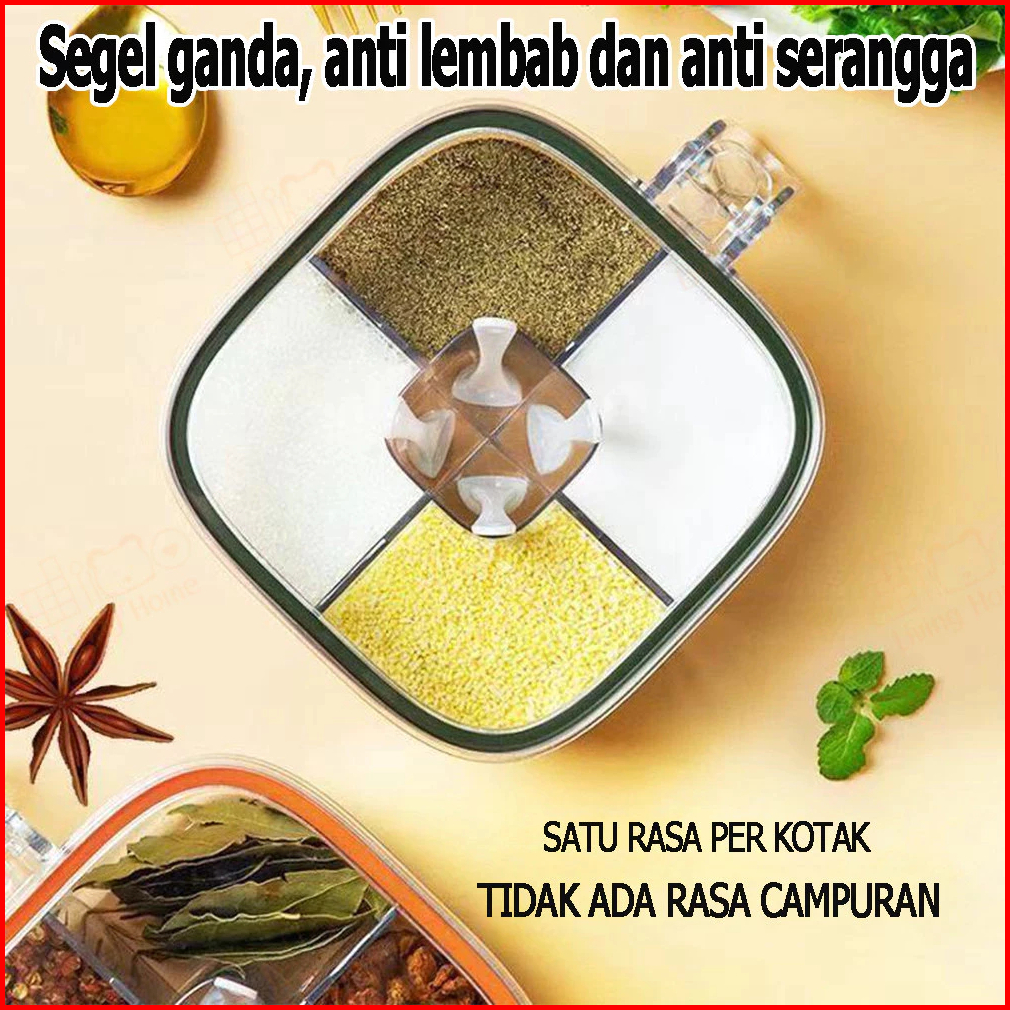 Wadah Bumbu Dapur 4 In 1 Aesthetic Kotak Plastik Penyimpanan Kedap Free Sendok 4 Sekat