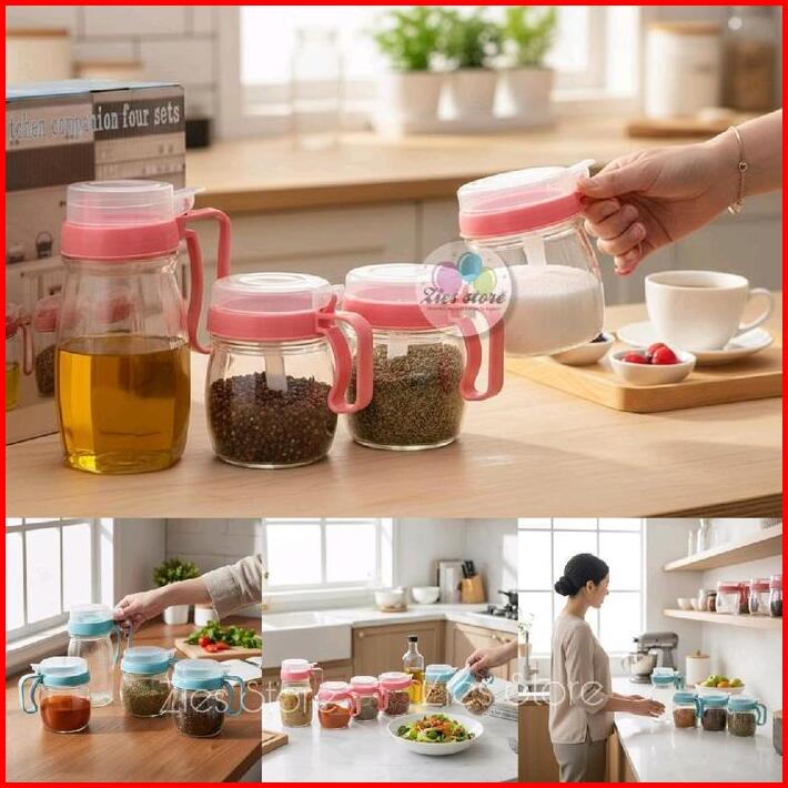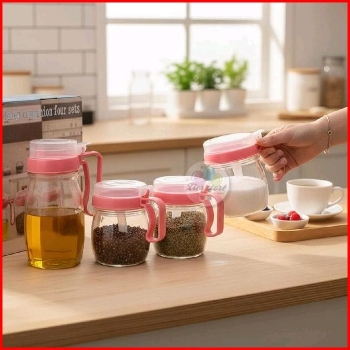 Bl 05 Kitchen Jar Set 4in1 Tempat Bumbu Dapur Minyak Wadah Bumbu Kaca