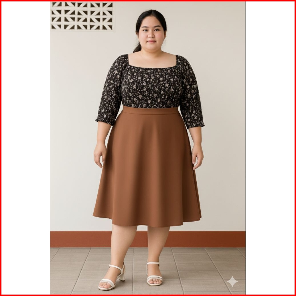 Rok Flare Skirt Midi Jumbo Polos Midi Flare Skirt Sport Padel Olahraga Kerja Rok Jumbo Wanita