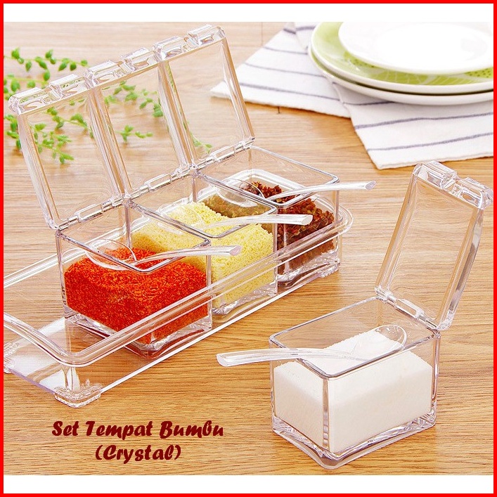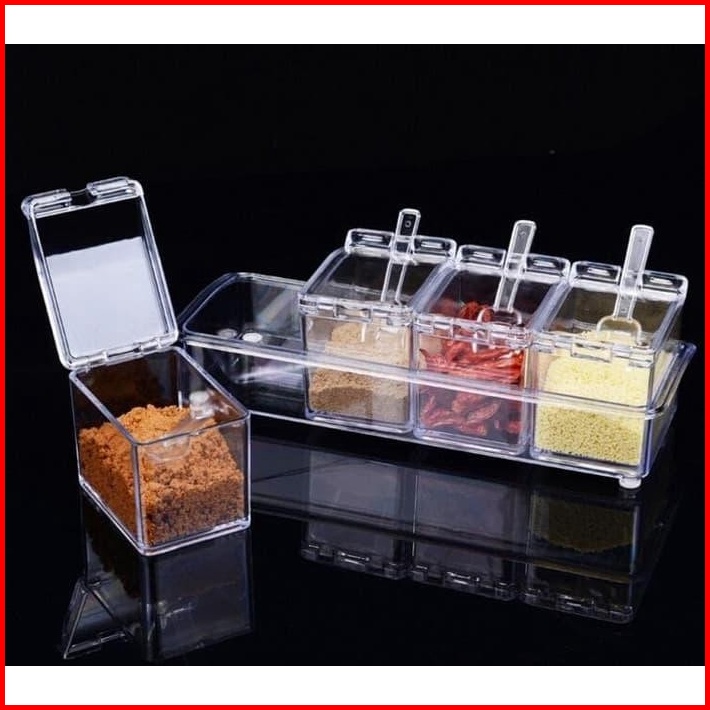 Tempat Bumbu Dapur 4 Sekat Crystal Tempat Garam Gula Merica