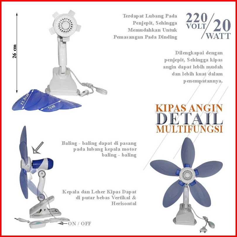Kipas Angin Listrik Jepit Duduk Dinding Desk Fan Deskfan Karakter 3in1 20 Watt W Gantung 20w 30w