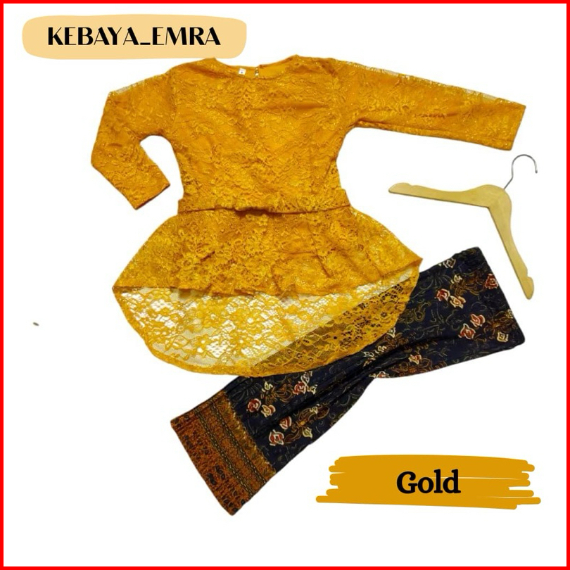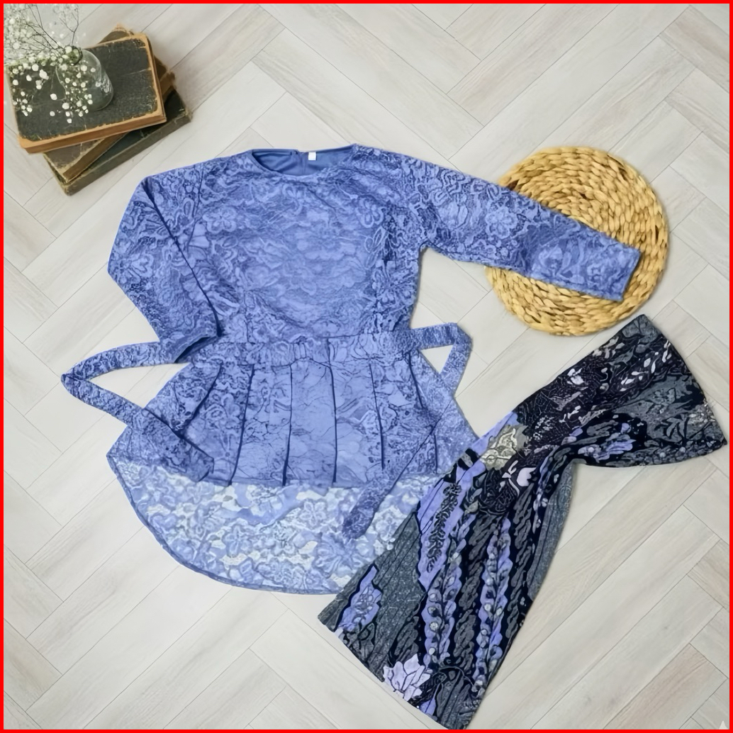 Setelan Baju Set Kebaya Anak Perempuan Modern Brukat Rok Plisket Lengan Panjang Buat Usia 4-14tahun
