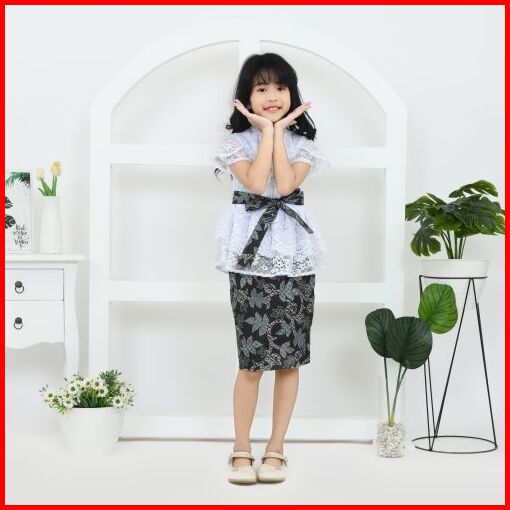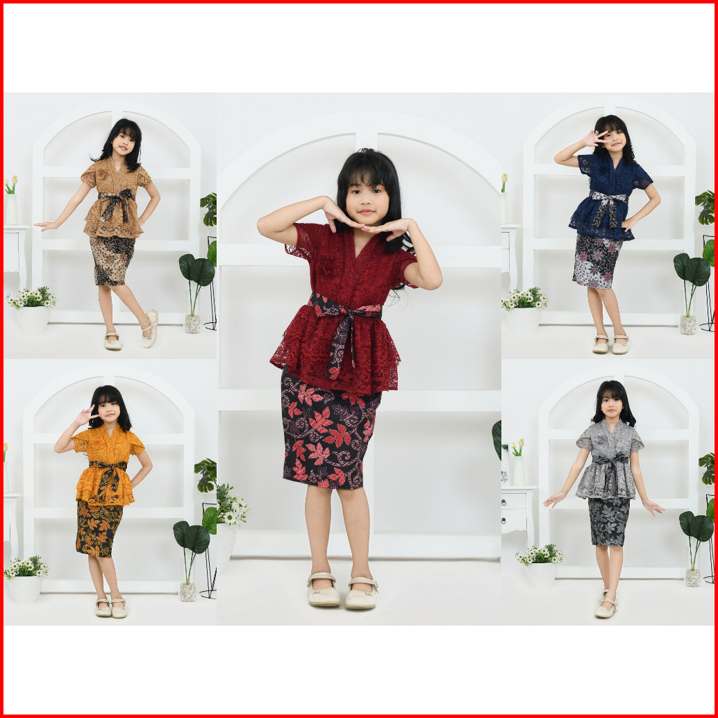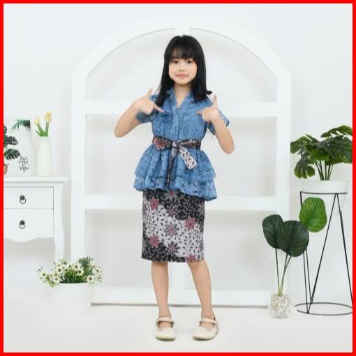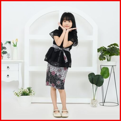Setelan Kebaya Anak Brukat Batik Modern Freya Kid Kebaya Kutu Baru Anak Pesta Kondangan