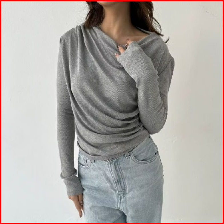 April Top I Atasan Knit Wanita Korean Top Baju Knit Wanita Lengan Panjang Basic Loong Sleeve