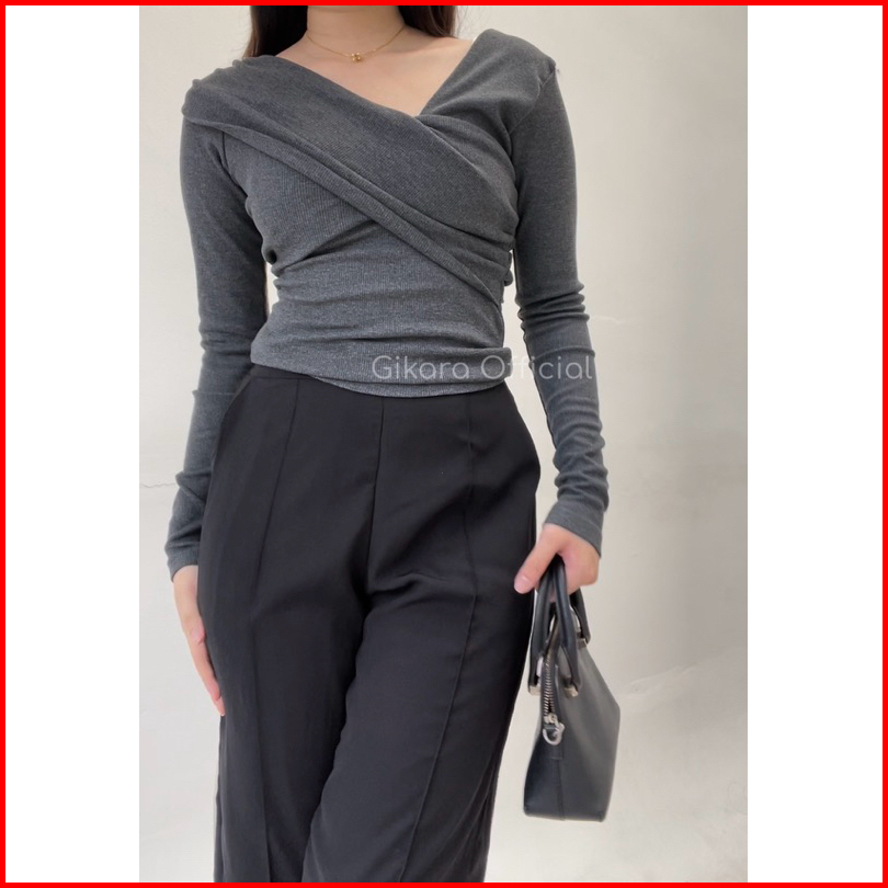 Jolene One Shoulder Knit Top Atasan Wanita Blouse Wanita Longsleeve Kuliah Kerja Pakaian Wanita K25