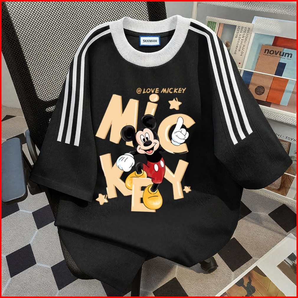 Quiss Kaos Oblong Lengan Pendek Bahu Lurus Abu-abu Motif Fun Retro Wanita 2025 Tren Atasan Longgar Lengan Setengah Baru