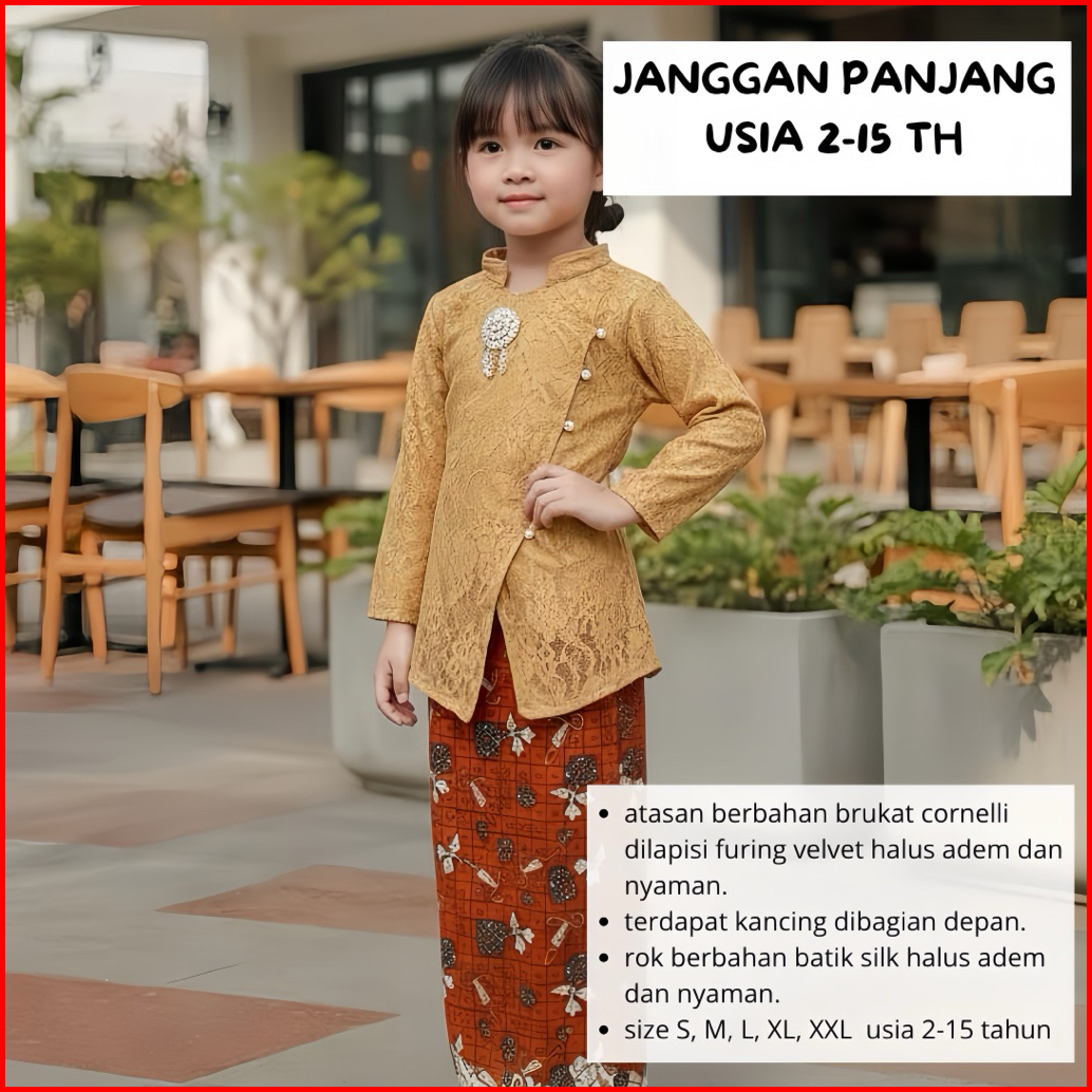 Set Kebaya Janggan Anak Brukat Premium Lengan Panjang Kebaya Modern