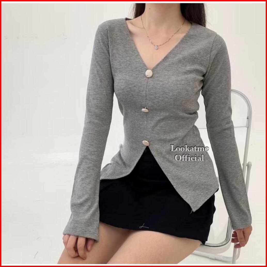 Atasan Casual Longsleeve Wanita Lengan Panjang Bahan Rib Kancing Premium Hijab Melar Nyaman Kekinian Stretch Basic