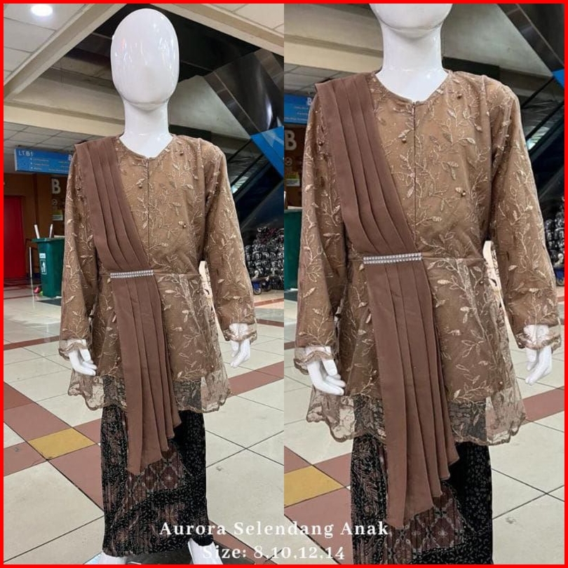 Setelan Kebaya Selendang Tille Anak Sd Smp Umur 4-12 Thun Rok Plisket Batik Anak Set Kebaya Anak Buat Wisuda Kondangan N