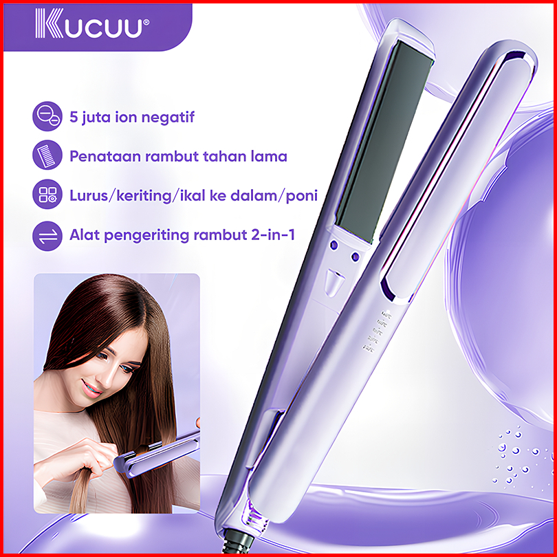 Kucuu Catokan Pelurus Dan Pengeriting Rambut 2-in-1 5 Juta Ion Negatif Desain Portabel Portabel Penjepit Pelurus Portabe