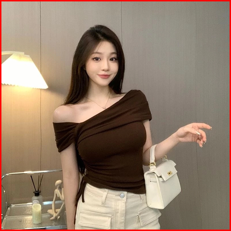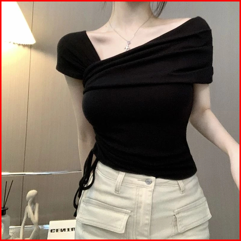 Eleganza Y2k Baju Rib Knit Lengan Pendek T-shirt Wanita Baju Atasan Wanita Terbaru
