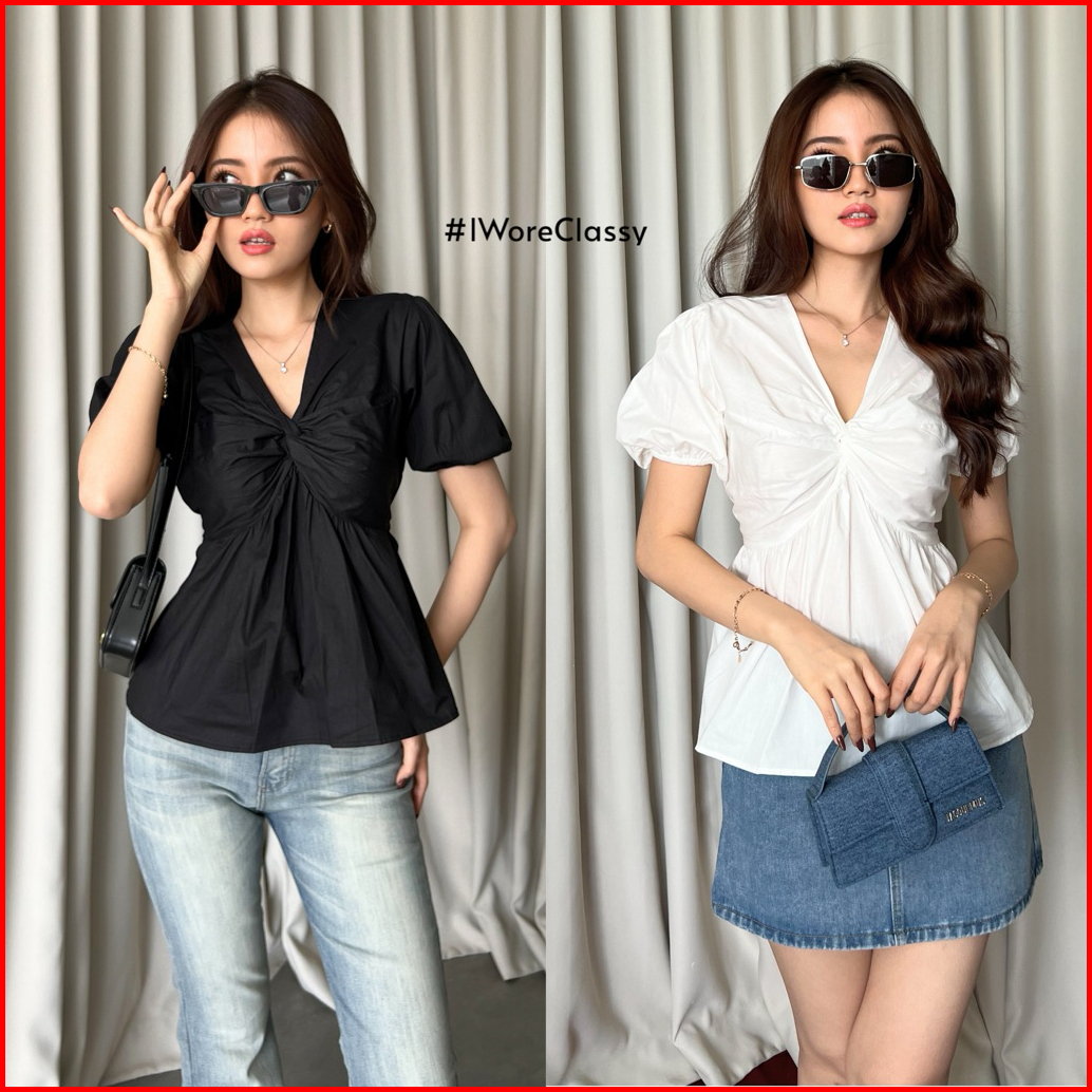 Classy Luna Top 842 Baju Atasan Wanita Formal Top Atasan Vneck Wanita Korean Look Casual Ootd