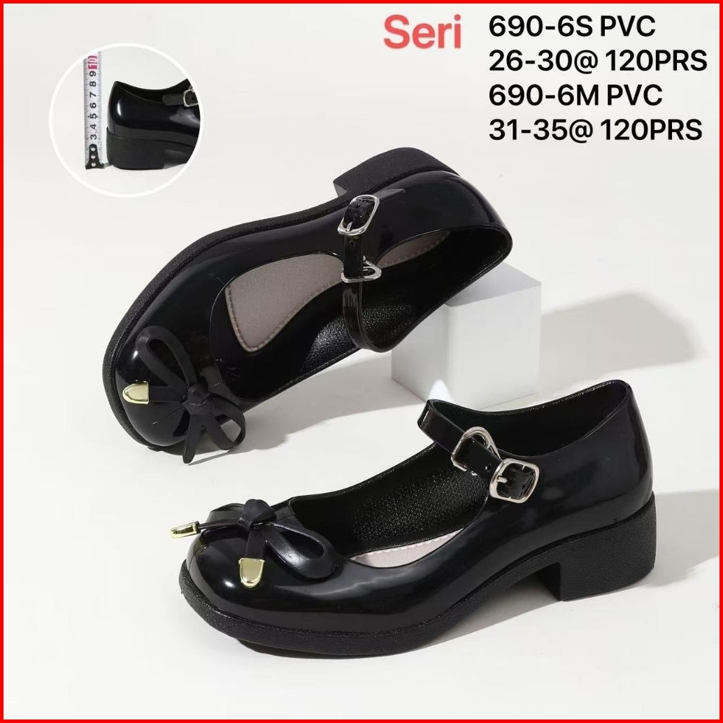 690-k Royal Sepatu Pantofel Karet Import Anak Perempuan Tanggung Untuk Tk Sd. Smp. Model Ada Pita Hak 3 Cm Size 26-35