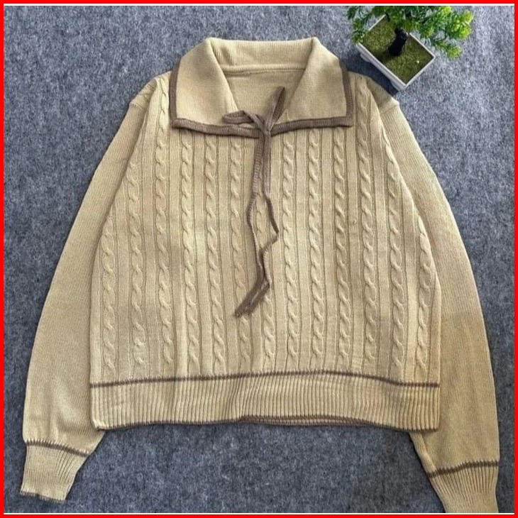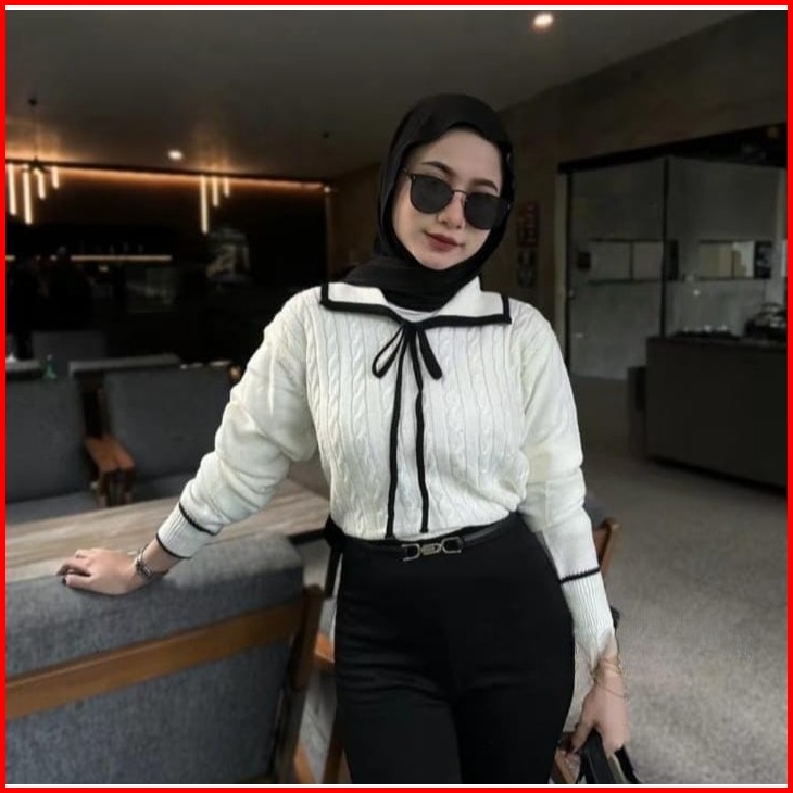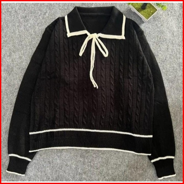 Kirana Polo Blouse Motif Kerah Pita Atasan Rajut Wanita Berkerah Korea Style