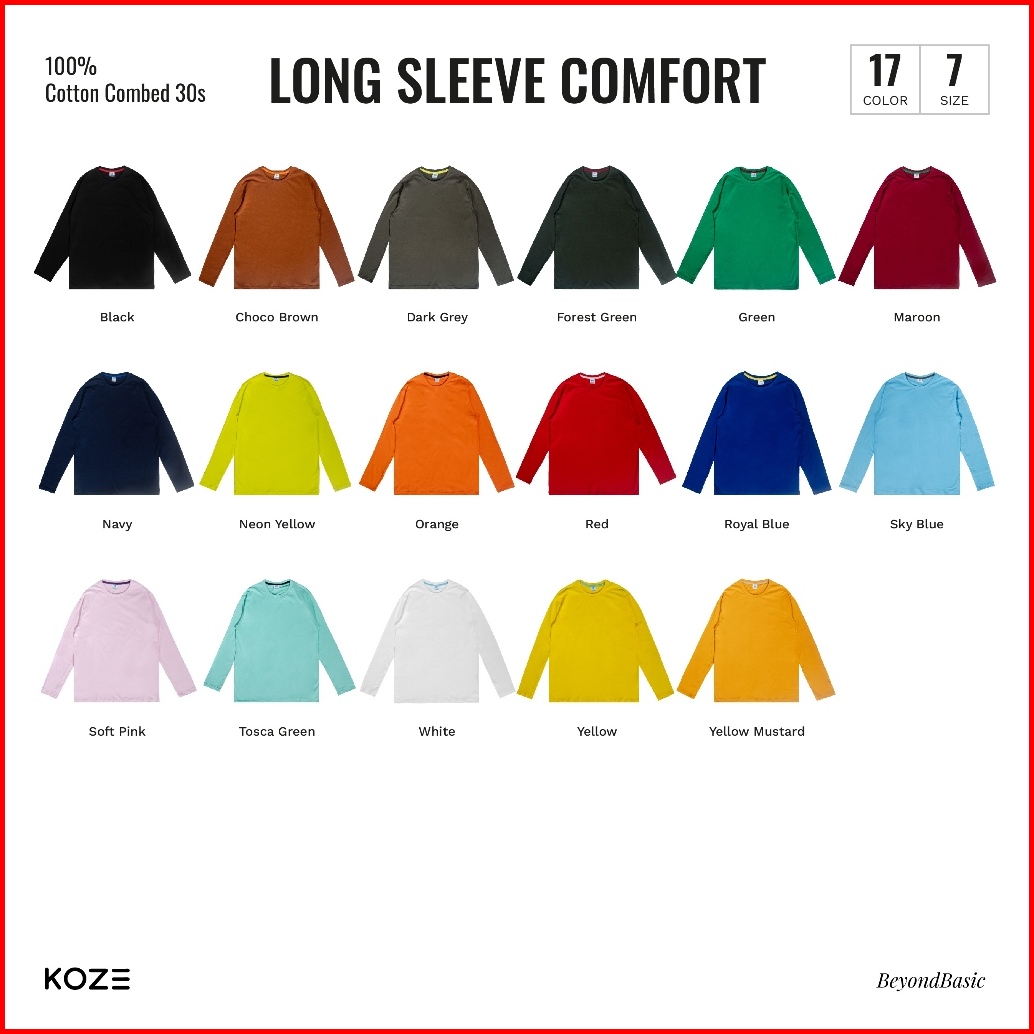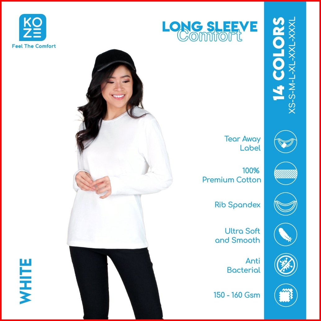 Koze - Long Sleeve Premium Comfort Premium Combed 30s White T-shirt - Kaos Polos Lengan Panjang Putih