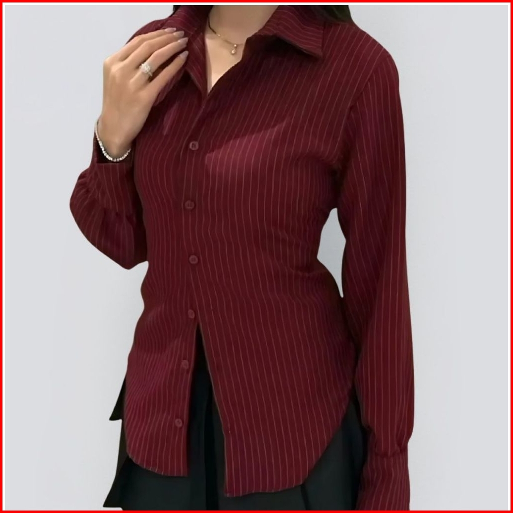 Kemeja Luna Stripe Casual Lengan Panjang Atasan Wanita Korean Style