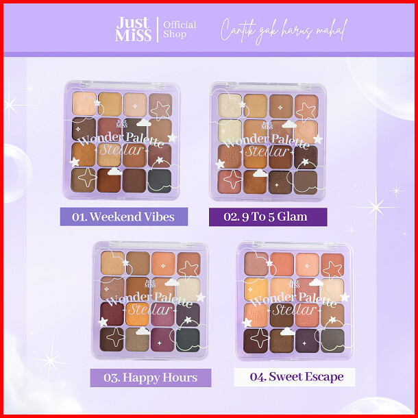 Just Miss Wonder Pallete Stellar Eye Shadow 16 Warna Shimmery Highlight Jus-wndr-pllte-stllr