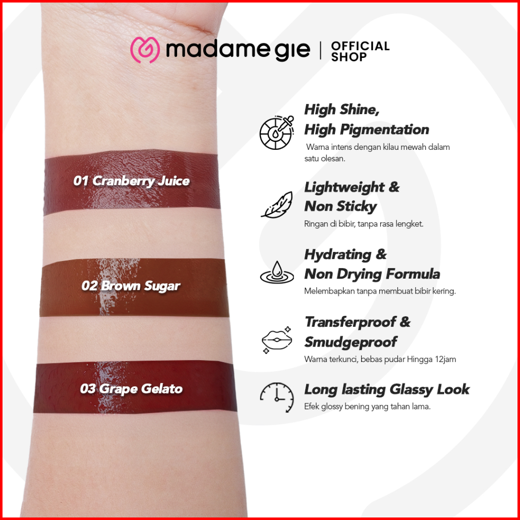 Gratis Facial Wash New Launch Madame Gie Look Glassy Lip Glaze - Makeup Lip Vinyl Glaze Non Crack Non Sticky Longlasting