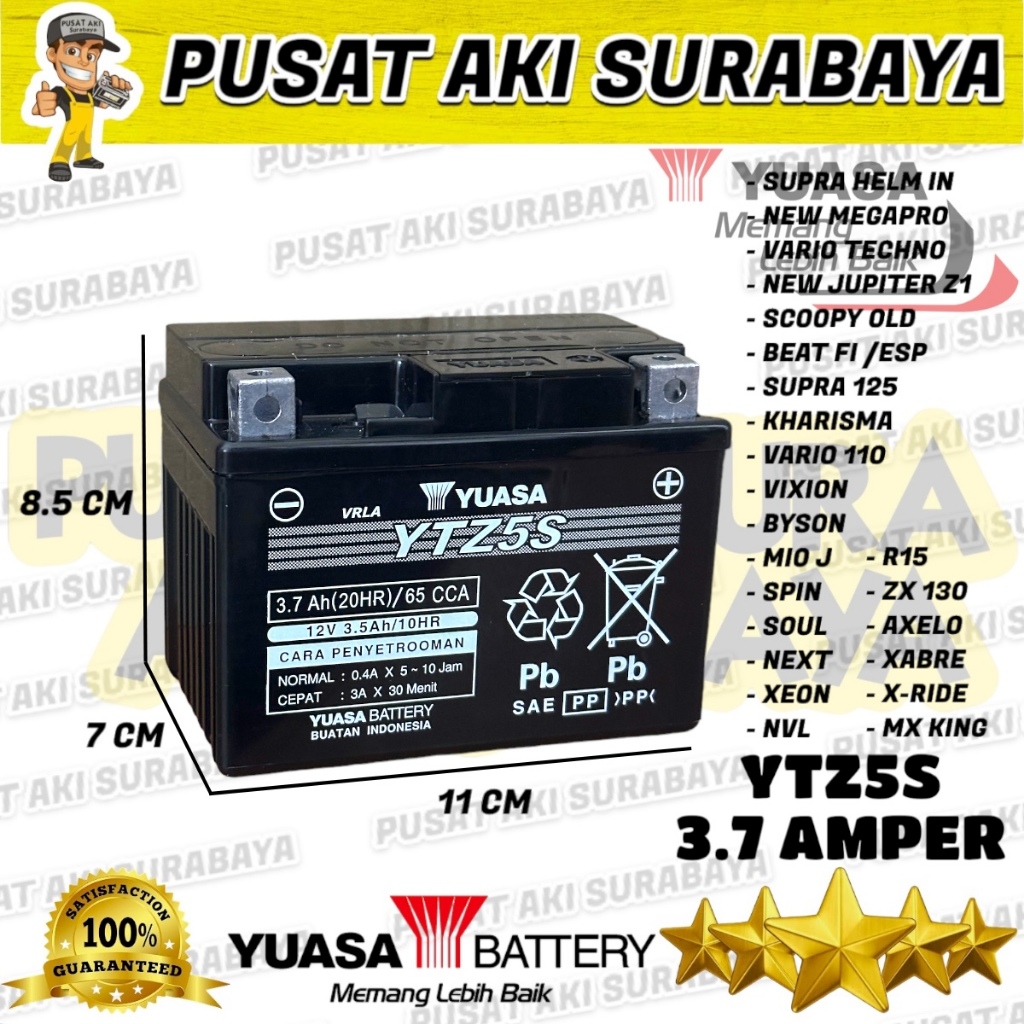 Aki Motor Yuasa Ytz5s Asli Original Accu Kering Beat Spin Vario Fu Verza New Megapro Honda Suzuki Kawasaki