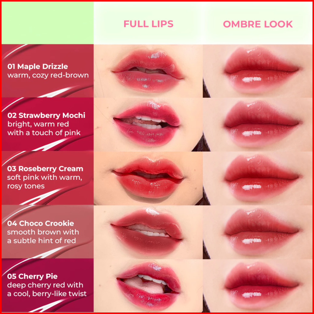 GlsBalm_01MapleDrizl, GlsBalm_02StrawbrMoc, GlsBalm_03RosebryCr, GlsBalm_04ChocoCroki, GlsBalm_05CheryPie