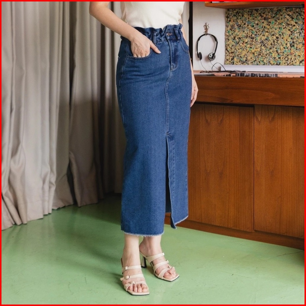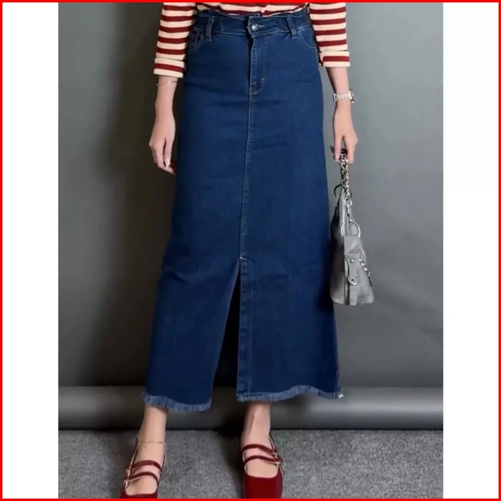 Stevia Rok Jeans 7 8 Wanita Belah Depan