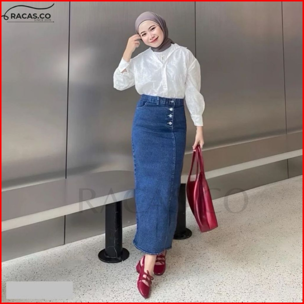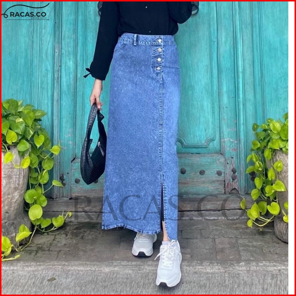 Rok Jeans Rebecca Rok Jeans Kancing Belah Samping Highwaist Rok Jeans Wanita Skirt Korean Style Rok Jeans Premium Melar