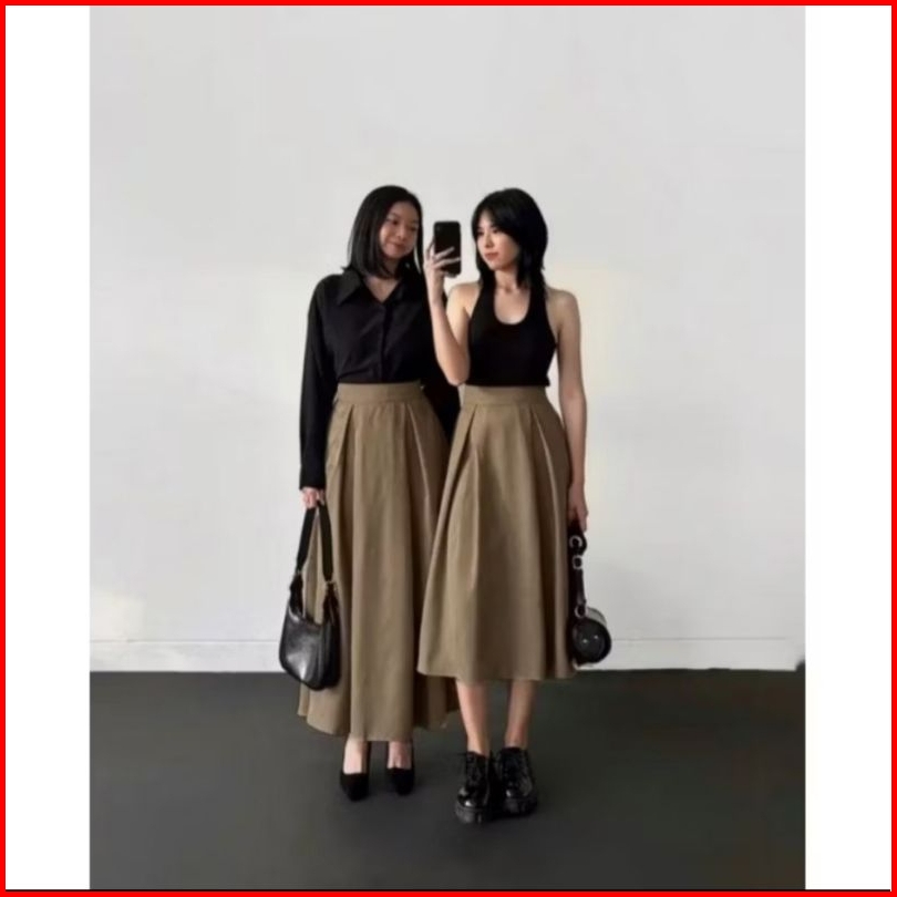 Rok Lunar Flare Skirt - Rok Cotton Twill Korean Skirt Sytile- Rok Korean Terbaru