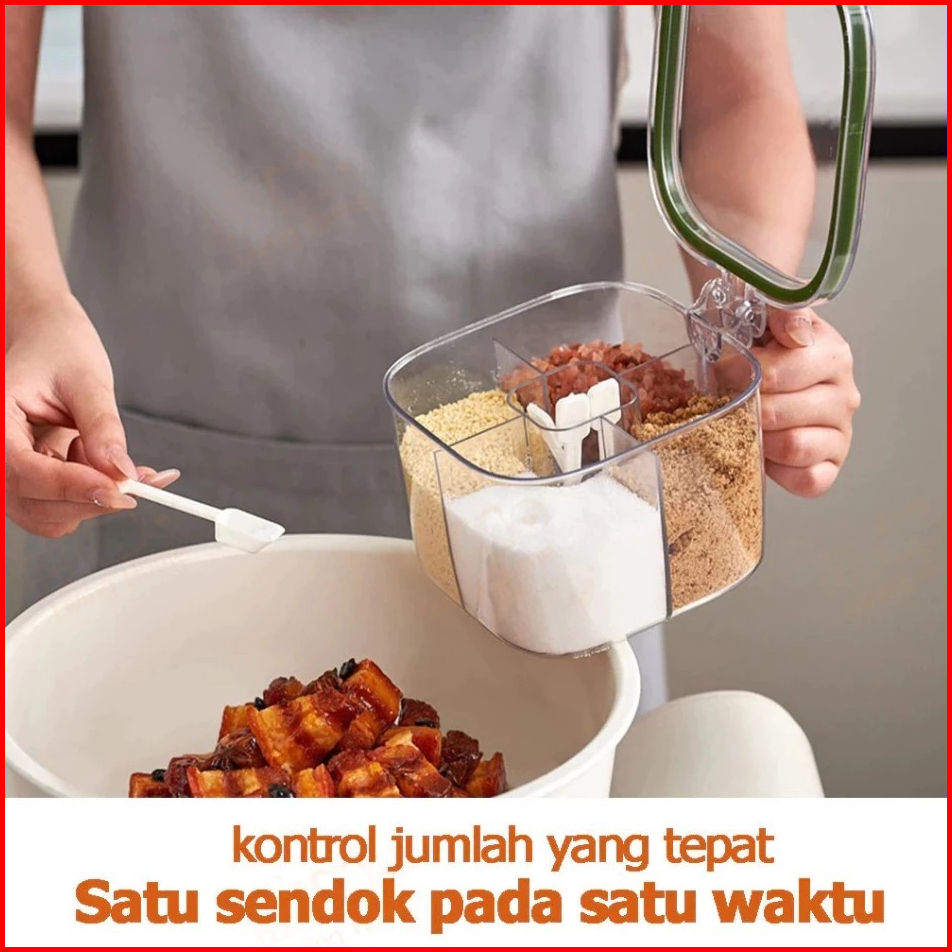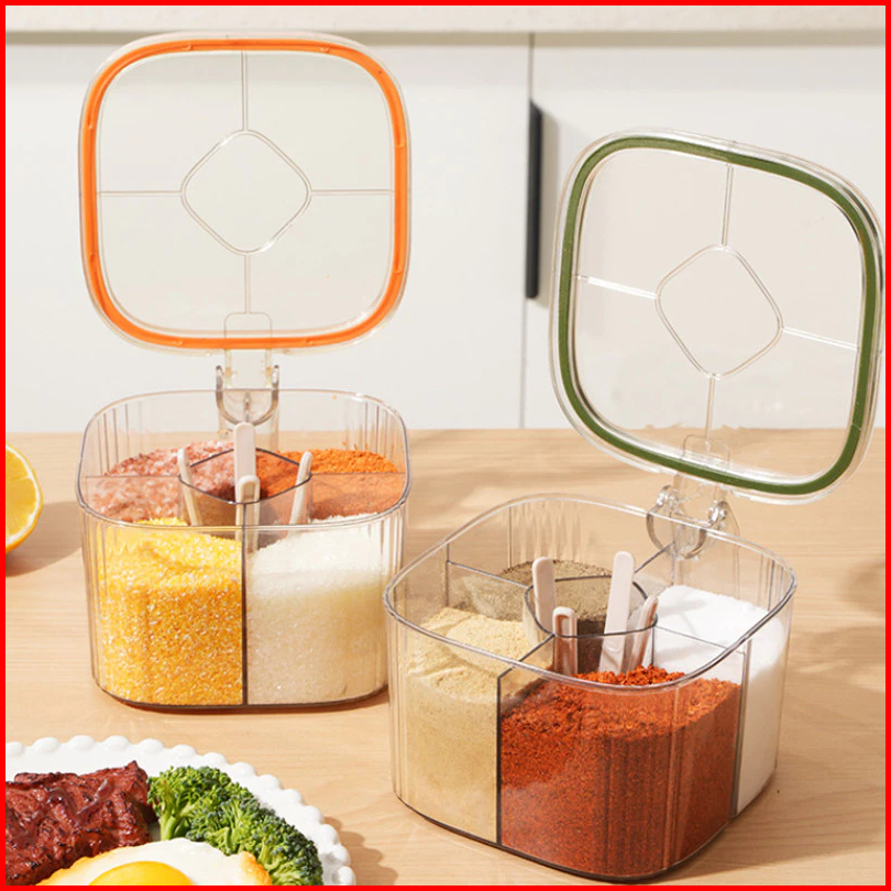 Wadah Bumbu Dapur 4 In 1 Aesthetic Kotak Plastik Penyimpanan Kedap Free Sendok 4 Sekat