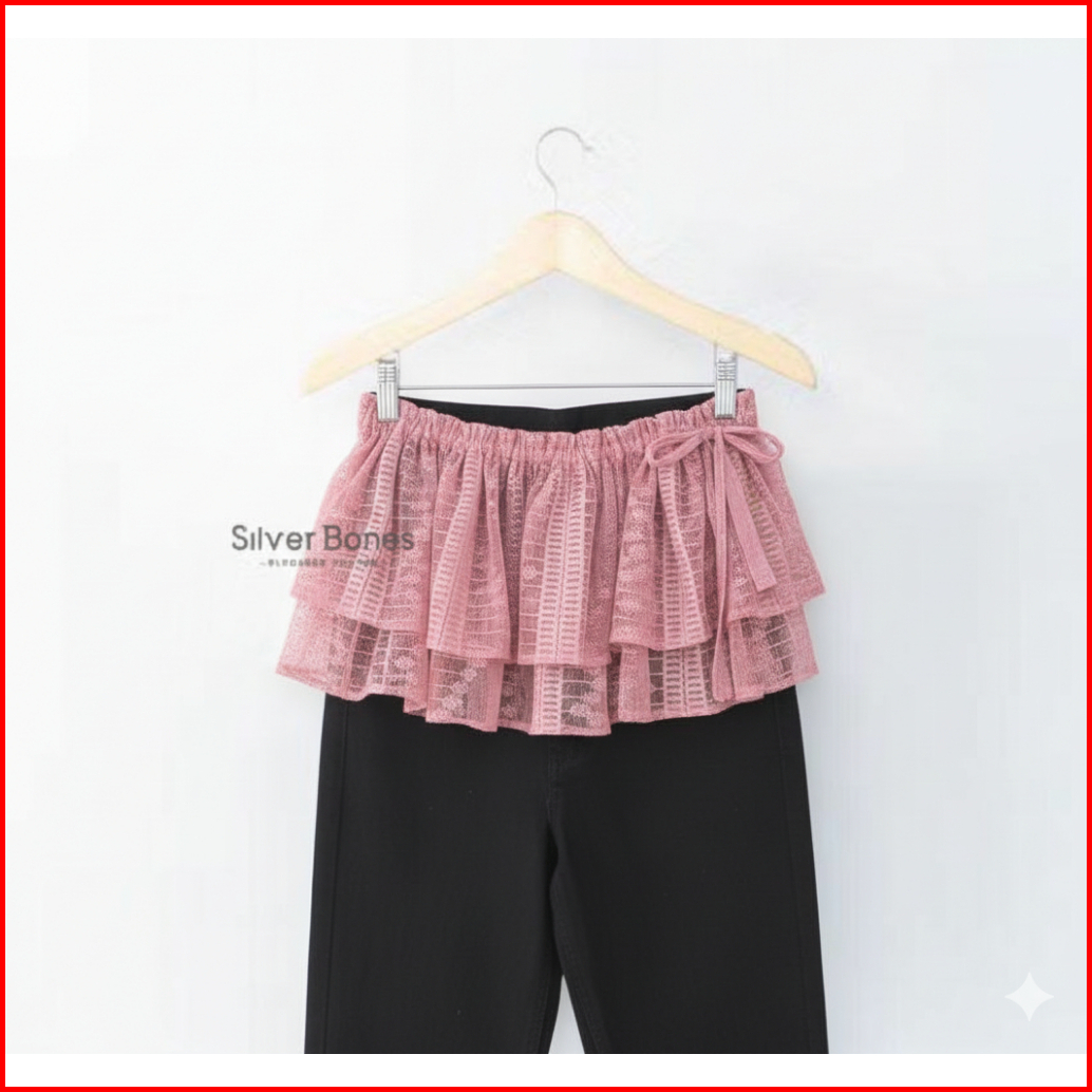 Silver Bones - Fei Curtain Skirt L Rok Renda Korean Style Kerudung Pinggul Lace Layered Wrap Skirt