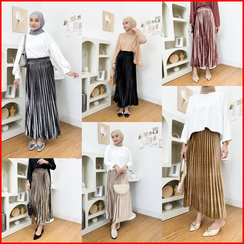 Rok Plisket Bludru Panjang Premium Import Jumbo