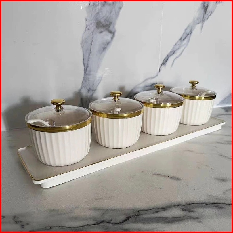Toples Bumbu Dapur Set 3 4 In 1 Toples Bumbu Cantik Tempat Bumbu Kompartemen Penyimpanan Garam