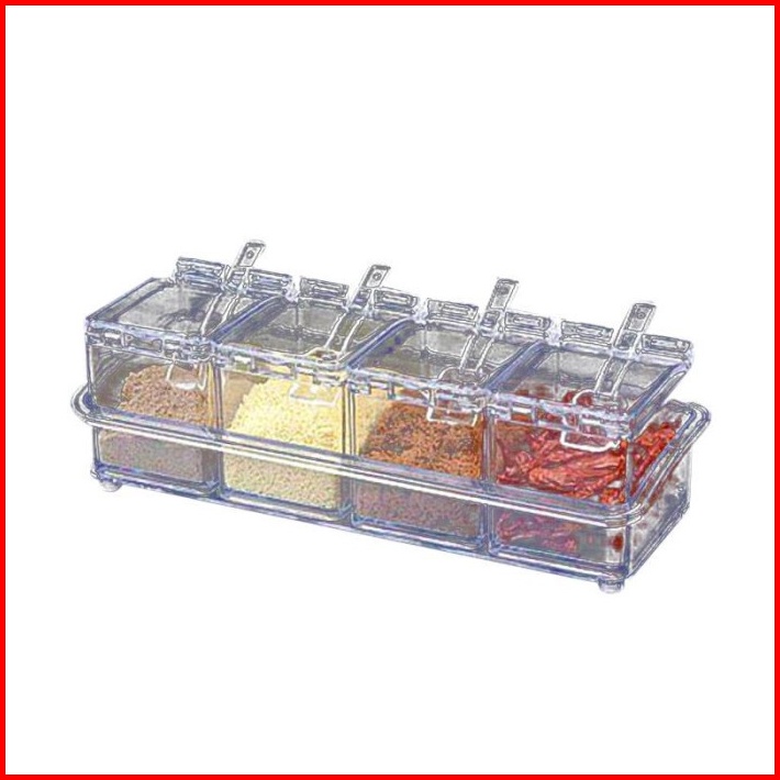 Dfanccie Acrylic Tempat Garam Gula Merica 4in1 Rak Tempat Bumbu Dapur Kotak