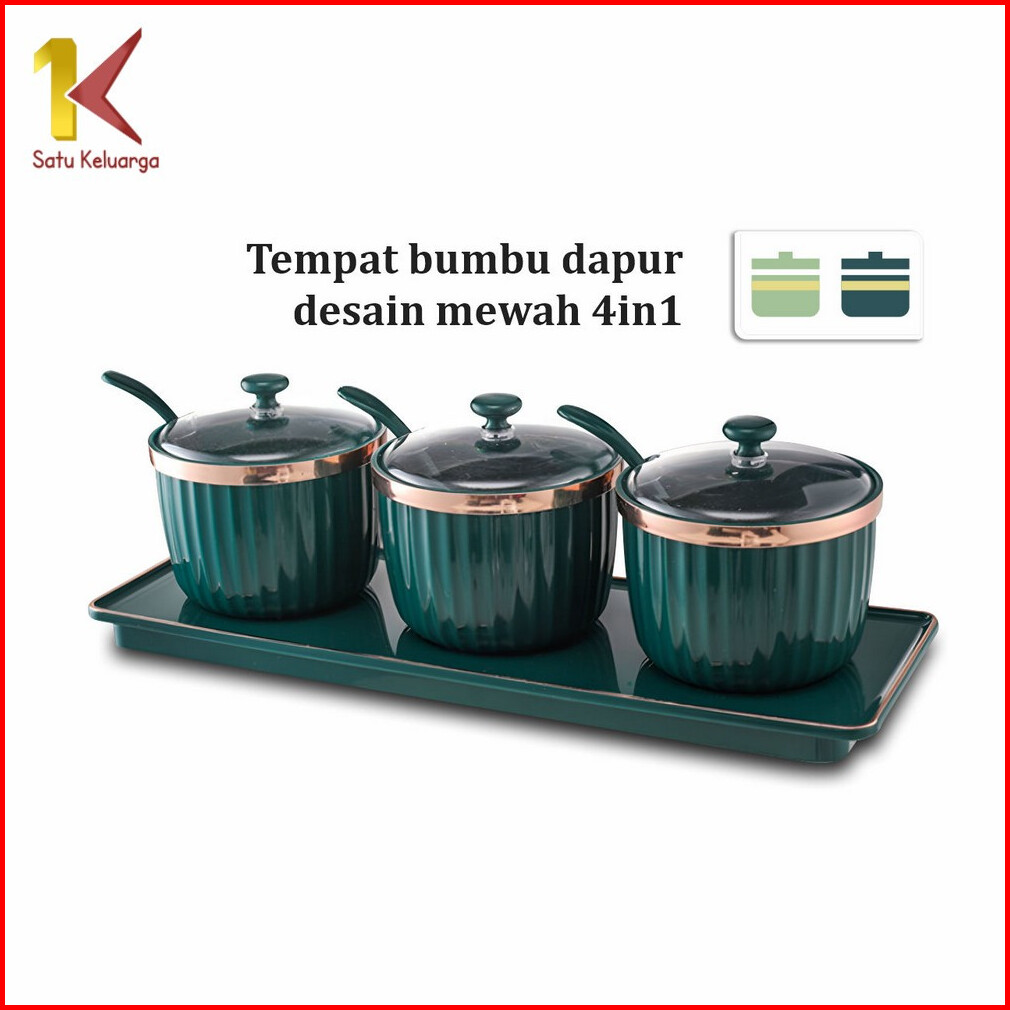 Satu Keluarga Tempat Bumbu Dapur Set 4in1 C1008 Kitchen Set Aesthetic Minimalis Free Sendok Praktis Penyimpanan Gula Gar