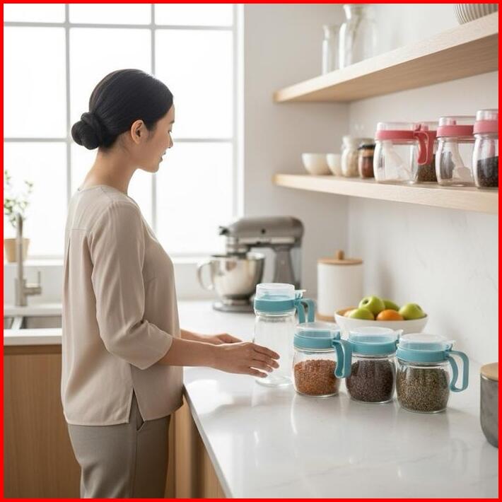 Bl 05 Kitchen Jar Set 4in1 Tempat Bumbu Dapur Minyak Wadah Bumbu Kaca