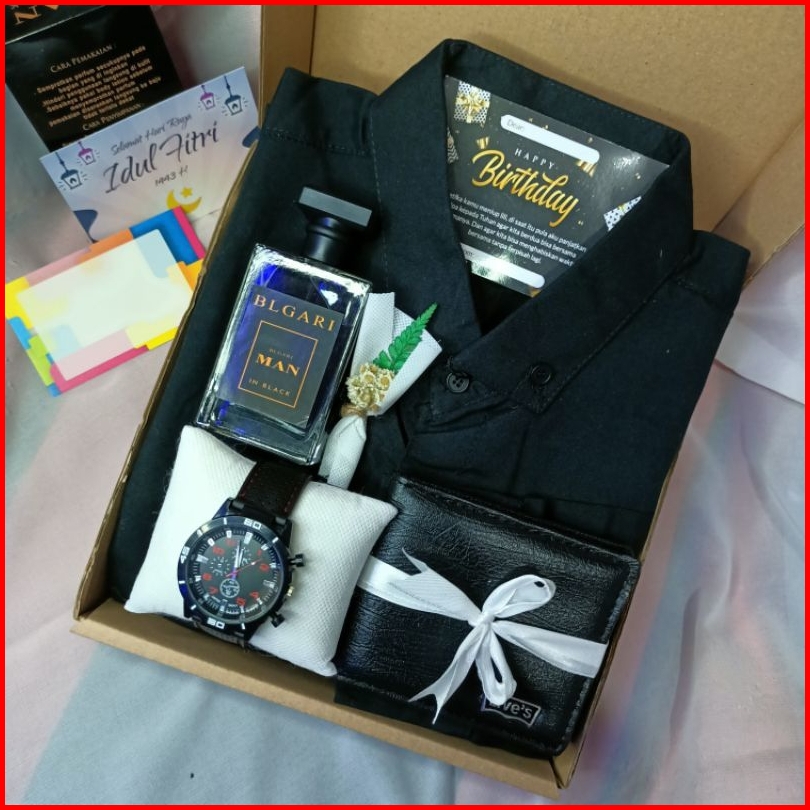 Paket Hampers Kemeja Hitam Kaos Cowok Farpum Cowok Dompet Cowok Jam Tangan Kado Ulang Tahun Wisuda Anniversary