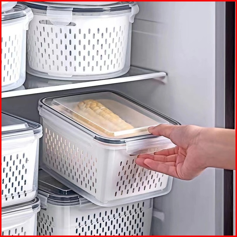 Promo Box Makanan Isi 3 Pcs Dengan Keranjang Saringan Pengering Buah Dan Sayur Kotak Penyimpanan Multifungsi