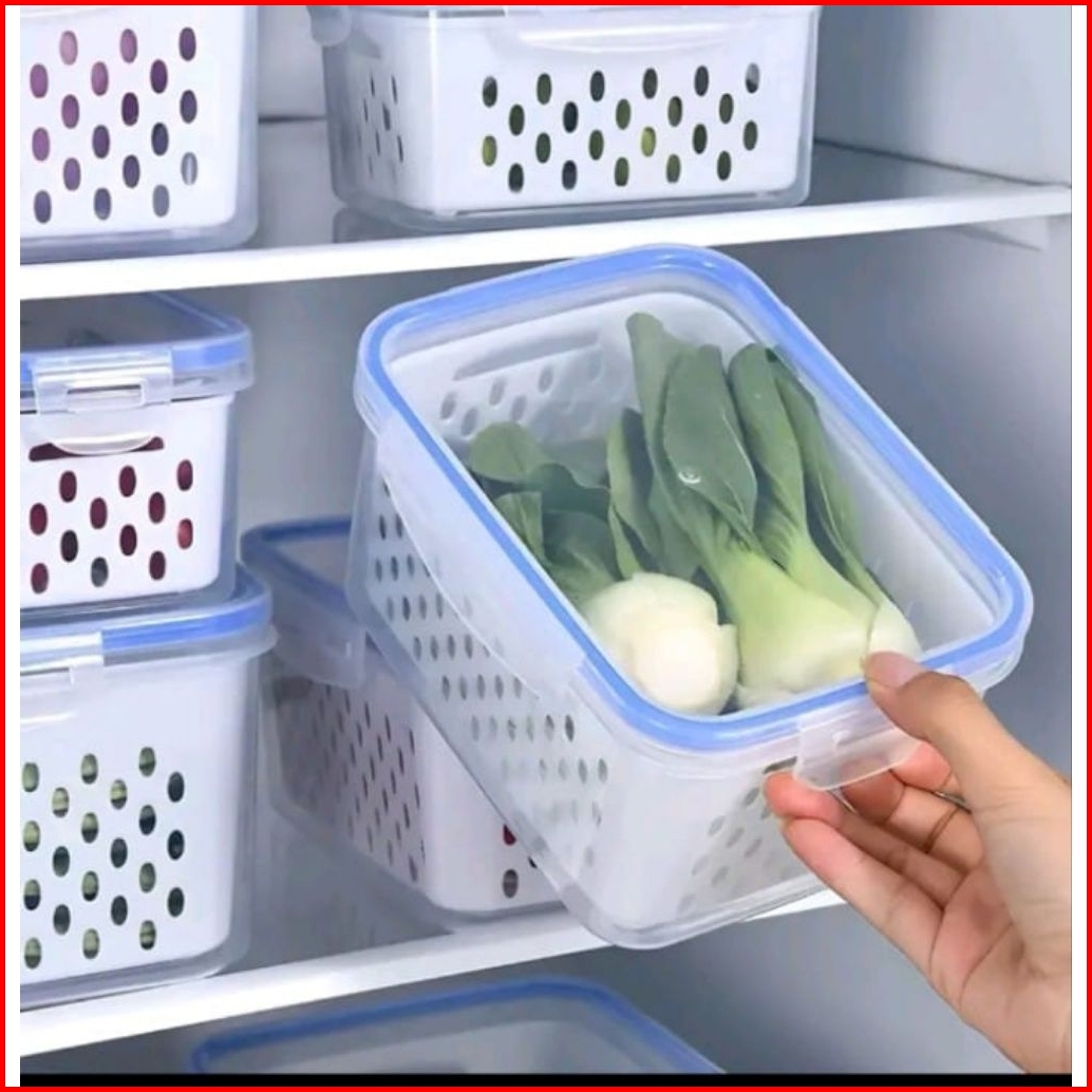 Kotak Penyimpanan Makanan 1 Set 3 Pcs Food Container Dalam Kulkas Wadah Tirisan Pakai Tutup Box Penyimpanan Makanan Di D