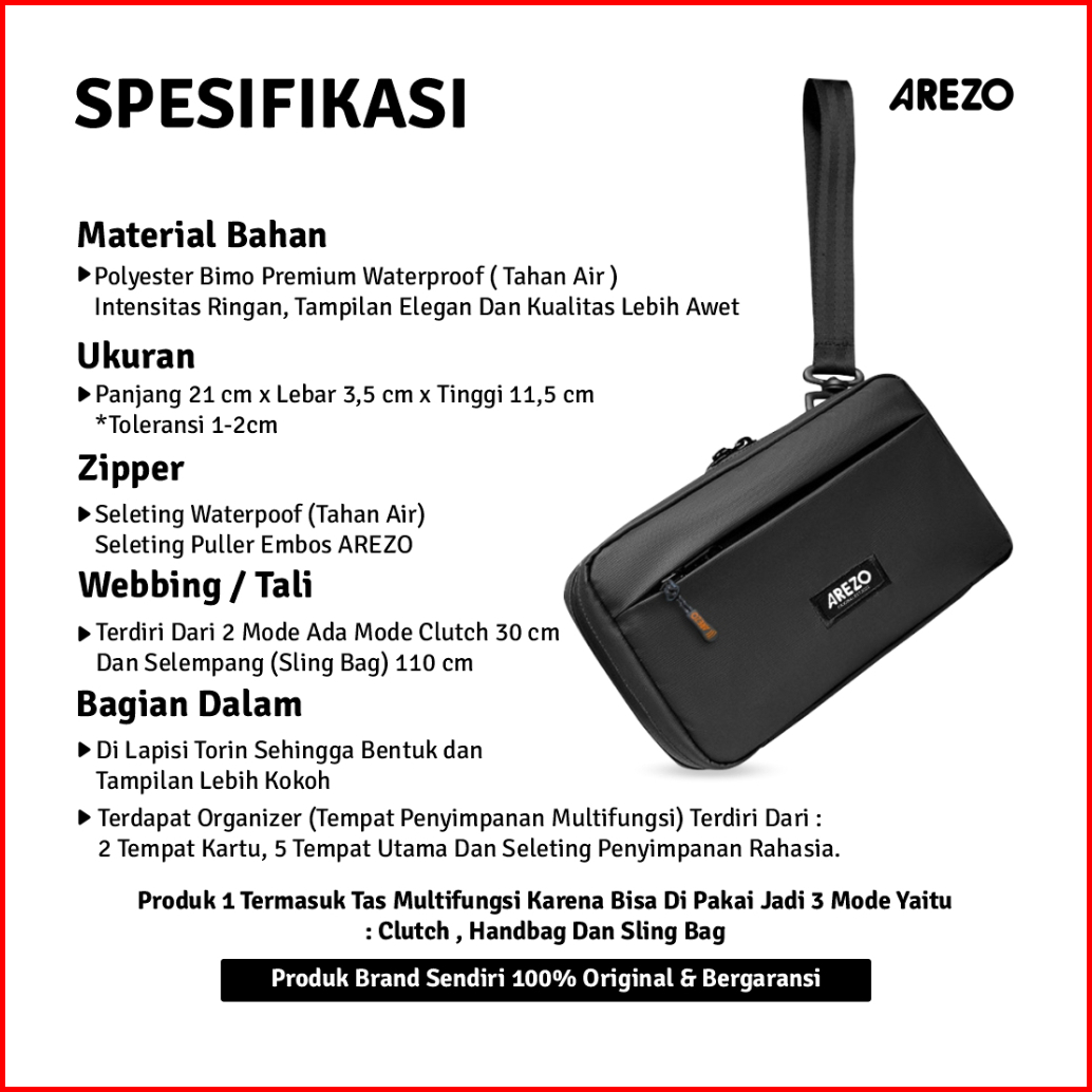 Arezo Handbag Hexa Anti Air Tas Clutch Tas Slempang Pria Wanita
