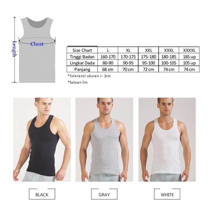 ORIGINAL KAOS DALAM PRIA COTTON PREMIUM SINGLET KATUN 100% - L, HITAM TERMURAH !!