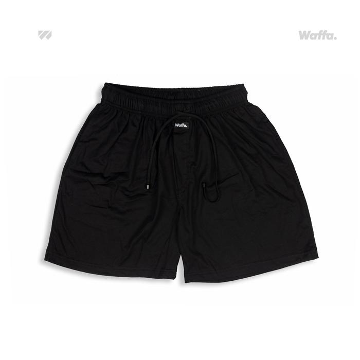ORIGINAL CELANA BOXER KATUN CVC MODEL TALI WAFFA PRIA WANITA - HITAM SOLID TL, ALLSIZE FIT M-L TERMURAH !!