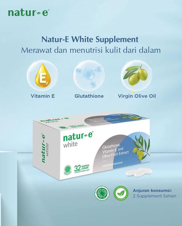 REKOMENDASI NATUR-E WHITE 16/32 SOFT CAPSULE - SUPLEMEN MENCERAHKAN KULIT - 16 TABLET ORI