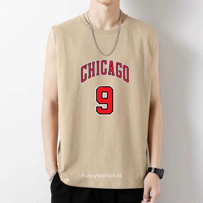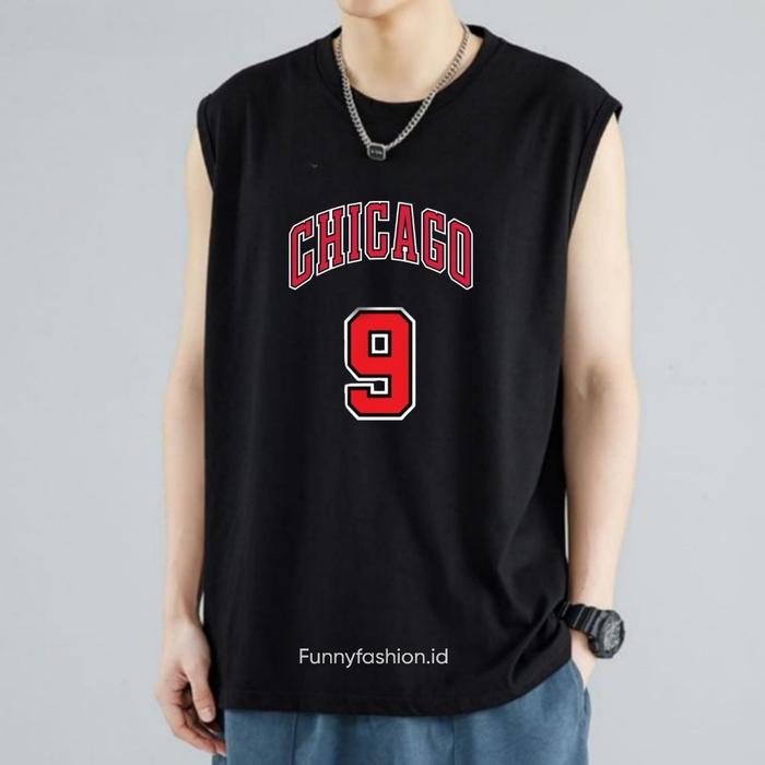 ORIGINAL SINGLET PRIA CHICAGO 9 - SINGLET PRIA GYM DEWASA - SINGLET PRIA TANPA LENGAN KEKINIAN - HITAM, S TERMURAH !!