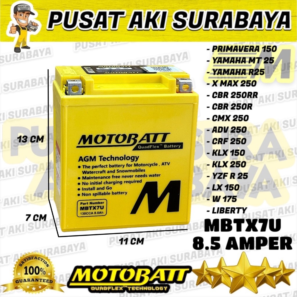 Aki Gel Motobatt Mbtx7u Original Accu Kering Motor Cbr150 R25 Mt25 Nmax Pcx Klx150 Vespa Ytx7l Gtz8v