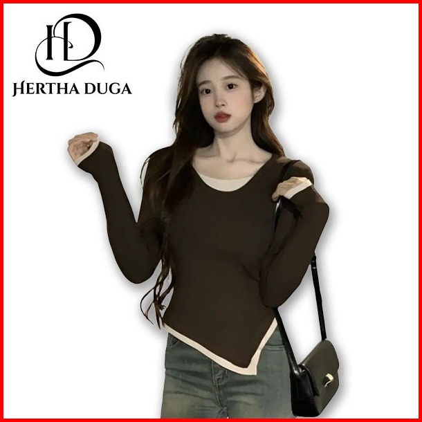 Hertha Duga Baju Top Wanita Korean Style Atasan Korea Lengan Panjang Semi Formal Basic Fitted Top